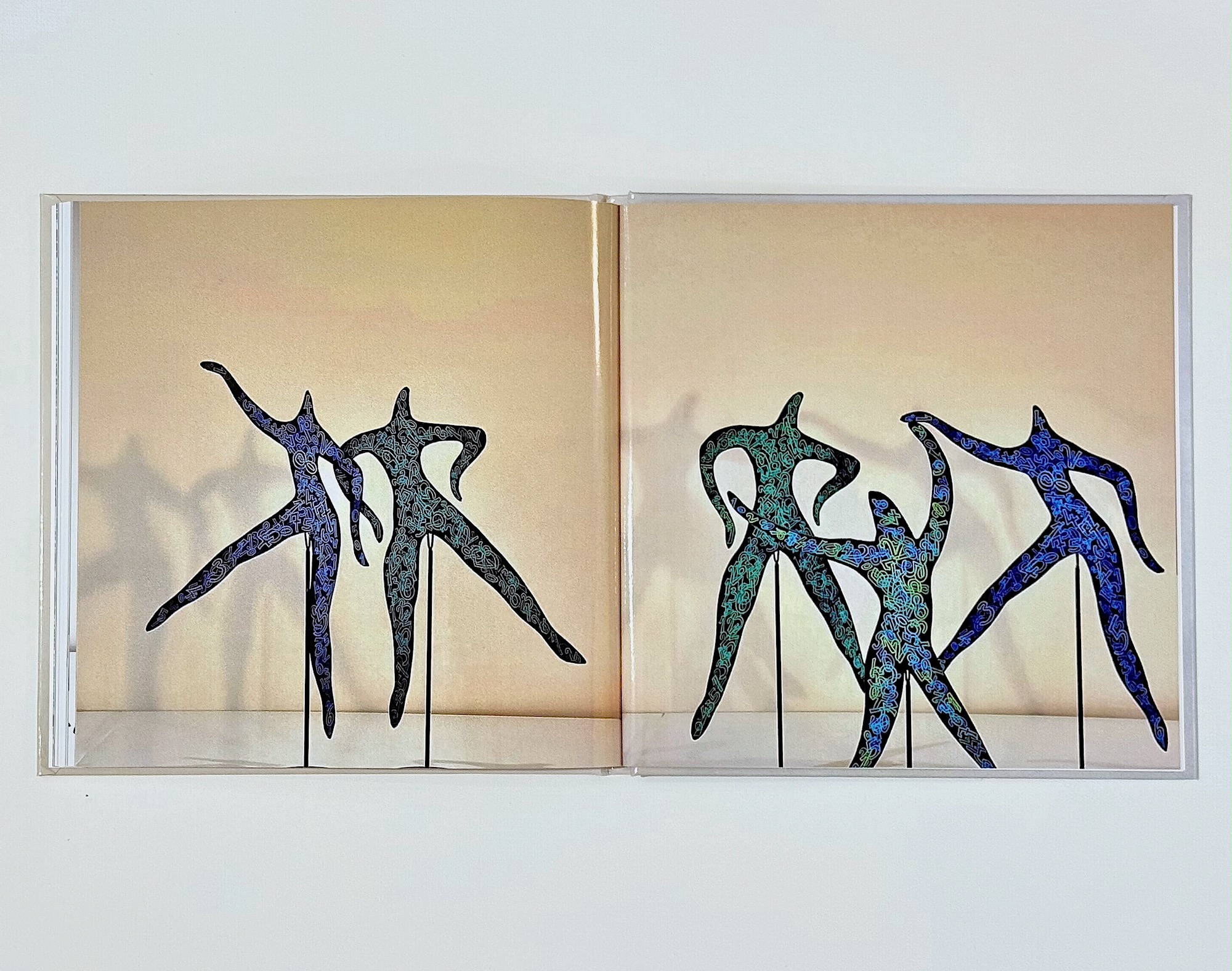 « J’ai imaginé ce Livre d’Art, comme un véritable grand spectacle de ballet de danse contemporaine, avec des coordinations de « costumes », lumières, et chorégraphie, sous forme de scénographies photographiques multiples et variées. Mes sculptures « Étoiles Dansantes », en mouvement… »