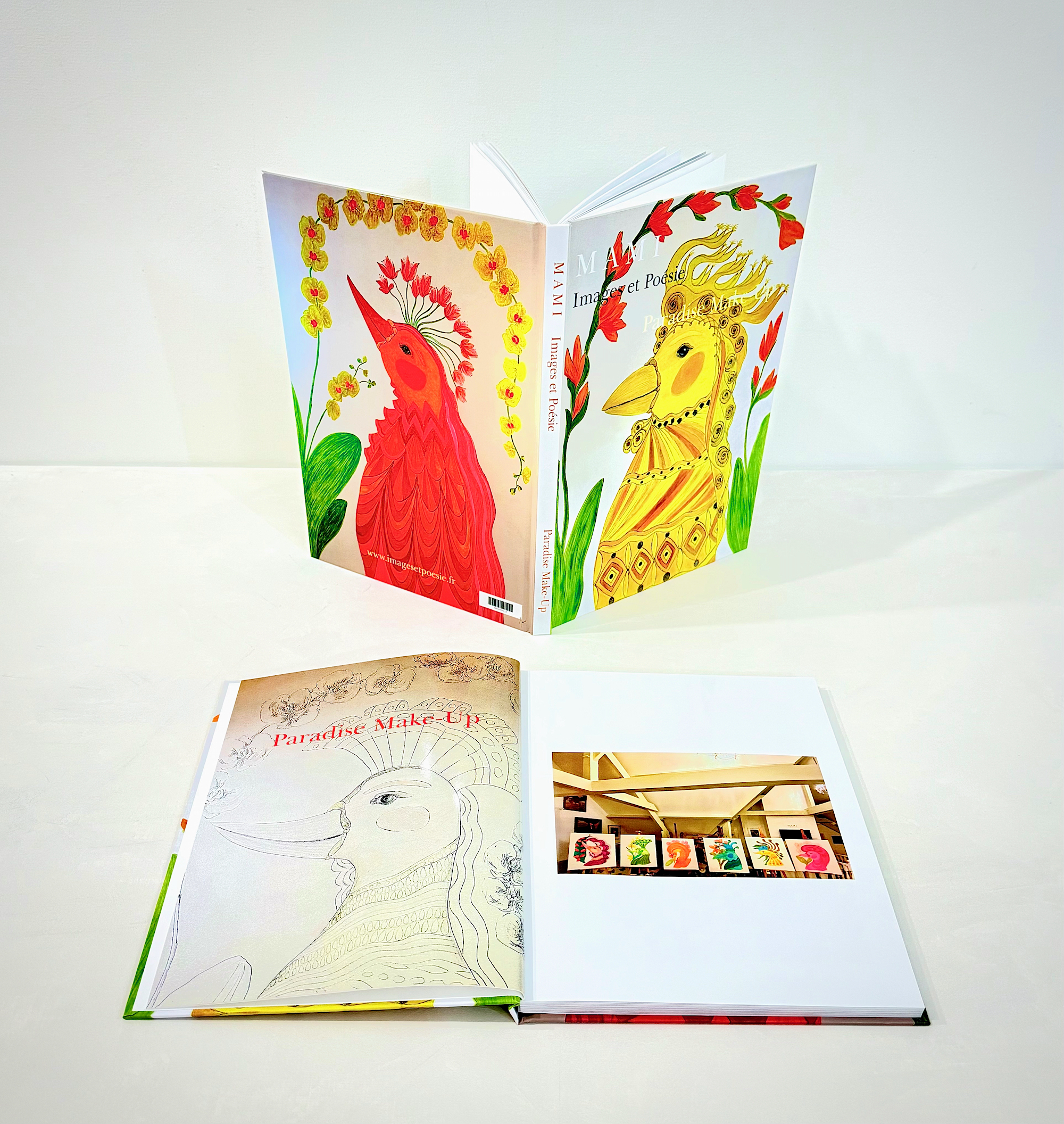 •Création du Livre d’Art de 80 pages en couleurs, de la série « Paradise Make-Up » d’Images et Poésie, incluant des oeuvres de peinture, dessins, et chaises d’Art.